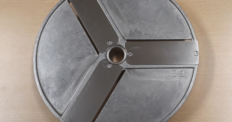 Als voorbeeld is hier een wortel met het 2 mm plakjes mes (E2) gesneden.